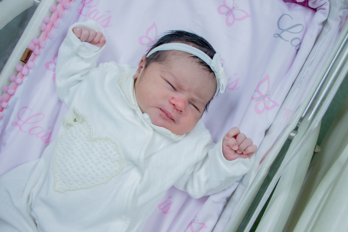 Lais em seu primeiro dia de vida, primeiras fotos em família.